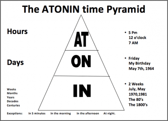 | at dinnertime | in 1990 | on 25 Dec. 2010 |